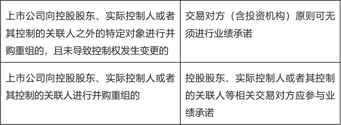 根据《重组管理办法》的规定,允许上市公司与交易对方根据市场化原则自主协商是否采取业绩补偿;但如同时满足以下情形,则应须约定业绩承诺,即就就相关资产实际盈利数不足利润预测数向上市公司予以补偿: