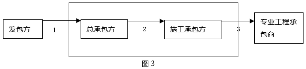 以本图为例,若总承包方为具有施工资质的总承包商,自行进行项目施工,则总承包商与施工承包方实际为一个主体,标号为3的专业分包行为与图1中标号为1的专业工程分包行为无论从外在表现形式上还是从法律后果上均一致,应当属于合法的转包行为。