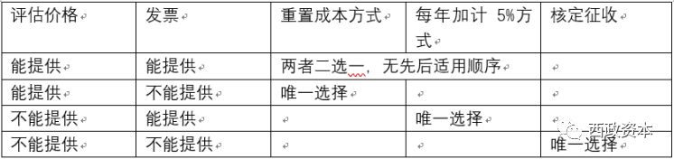 重点注意:既能提供评估价格,又能提供购房发票的,重置成本方式与每年加计5%方式可以二选一,无先后顺序。关于核定征收的问题,按深圳这边的规定,自建房是肯定不能适用核定征收率的;只有在纳税人无法提供任何发票或过程中的合法有效票据或凭证前提下,才可以适用核定扣除项目的方式(但核定扣除项目方式并无法达到减税的目的)。具体详见《深圳市地方税务局公告2015年第1号:土地增值税征管工作规程(试行)(二)》第五十八条“核定征收包括核定扣除项目、核定征收率:核定扣除项目,指纳税人不能提供购房发票,主管税务机关在确定其加计扣除基数时可以依据房产证登记价格或在国土产权管理部门查询的原购买价格核定。属于自建房的,主管税务机关可以依据房产建造价格以及原地价款,核定加计扣除的基数。核定征收率,指对符合核定征收条件的按不低于我市土地增值税核定征收率标准计算应当缴纳的土地增值税所使用的征收率:住宅类中普通标准住宅为6%,非普通标准住宅为8%;商业类10%,其他类型为5%。分类标准以国土产权管理部门产权证书的分类为准。”