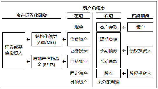 企业通过股权或债权融资(企业证券化)是在资产负债表右边进行融资,以企业整体为融资主体,假设企业会永续经营。企业股权和债权投资者都会关注融资企业的整体信用,表现和发展潜力,所以企业在传统融资中会受到很多来自投资者的限制和自身整体条件的制约。