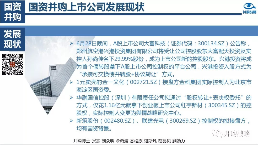 摘要:在资管新规的大背景下,国资并购上市公司股权的情况处于上升趋势,其不仅体现了国资公司运作思路的转变,同时通过国资平台有利于企业提升效益和效率。本文对国资并购上市公司现状、并购模式和一系列分类数据等展开分析,对国资并购上市公司进行了深度解读。