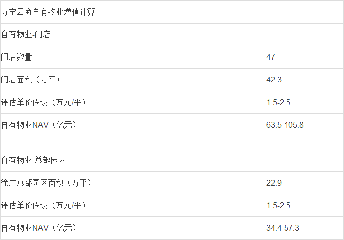 2)苏宁徐庄总部园区合计约22.9万平方米(东区18.1万平方米,西区4.8万平方米),基于周边写字楼均价,我们判断其市场单价1.5-2.5万元/平方米;