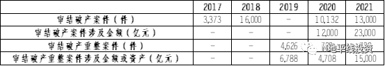 近年,随着供给侧改革、降杠杆等政策的持续推进,以及全球和我国经济面临的挑战加剧,企业破产的数量和涉及金额显著增加。根据《最高人民法院工作报告》,近年审结破产案件数量和金额、审结破产重整案件数量和金额(或涉及资产)的变化情况如下: