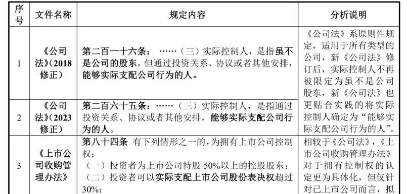 注:需要说明的是,关于实际控制人认定的相关规定,除上述文件外,各证券交易所各板块股票上市规则中也有涉及,内容与《公司法》(2023年修订)及《上市公司收购管理办法》规定一致,在此不做赘述。