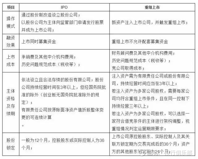 IPO与重组上市的主要区别?