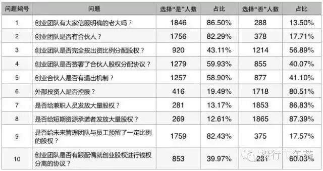 以下是我们的问卷与IT桔子收集到的创业企业股权体检数据:
