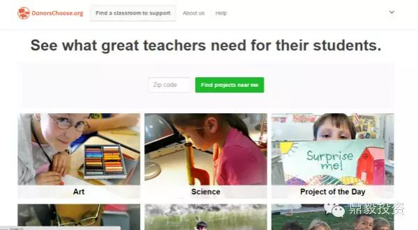 Donors Choose,众筹教育学费(2000年,美国):Donors Choose是一家小型的P2P慈善捐助网站,专门为公立学校老师们的教案开发和创新募集资金。目前已经募集了超过2.25亿美元资金,他们对外提供了超过40万个课堂项目,比如为课堂购买字典,或是赞助学生进行实地考察等等