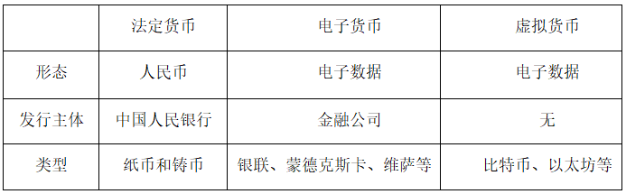法定货币、电子货币和虚拟货币的差异