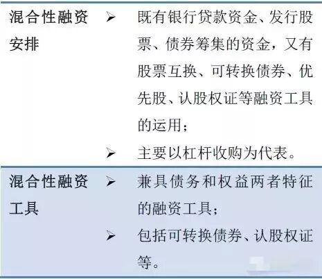 在并购中的运用分为混合性融资安排和混合性融资工具